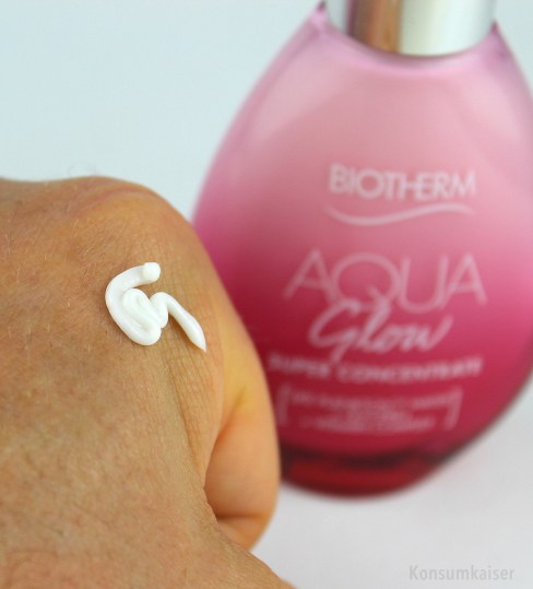 Komplett, eher reichhaltig und fest – die ersten Attribute, die mir einfallen. Beim Verteilen dann die Überraschung: Die Creme wird wässrig und sehr, sehr feucht.