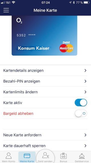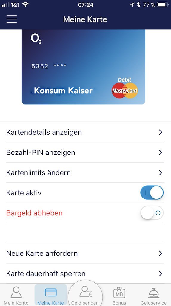 - Das eigene Handy (samt Telefonnummer) wird mit dem Konto verbunden, und ab sofort kann man dann alle Bankgeschäfte nur über DAS Handy und die App erledigen (Sicherheit). Das können andere Konten zwar auch, hier ist es aber möglich seine eigene PIN auszuwählen, das Konto kann man in Echtzeit sperren oder wieder öffnen. Man kann auch nur Geldabhebungen sperren oder freigeben und die Tageslimits unbegrenzt oft ändern, was auch gerade bei Auslandsaufenthalten wichtig sein kann.