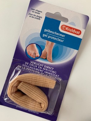 Nun habe ich aber den zuschneidbaren Schutzschlauch für Zehen und Finger entdeckt. Sieht von aussen aus wie ein Pflasterschlauch ist aber innen mit einer polsternden festen Gelschicht bezogen. Man schneidet ein Stück Schlauch ab (je nach Zehen- oder Fingergröße) und schon ist die Partie perfekt geschützt. Das sitzt dann so stramm, dass nichts verrutschen kann.