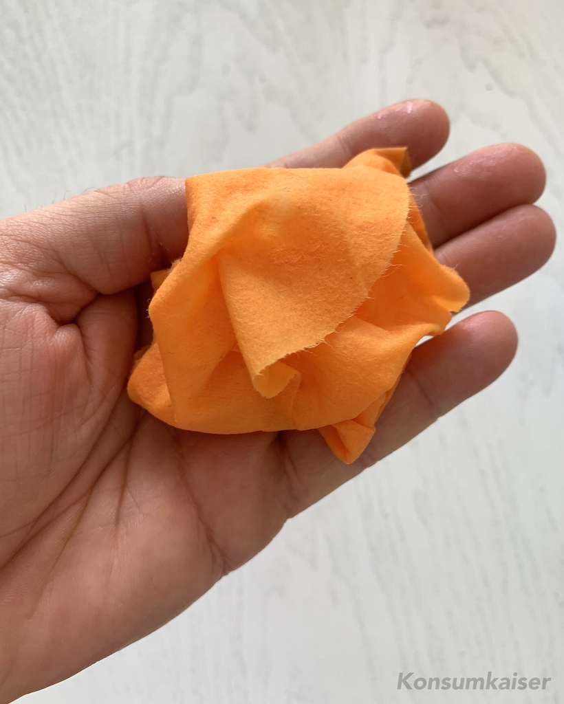 Nach fünf Minuten wird sie abgenommen, und man sollte dann eigentlich frisch und „wach“ aussehen, glaubt man dem dynamischen Orange der Verpackung (und natürlich der Beschreibung). Bei mir sah das leider anders aus!