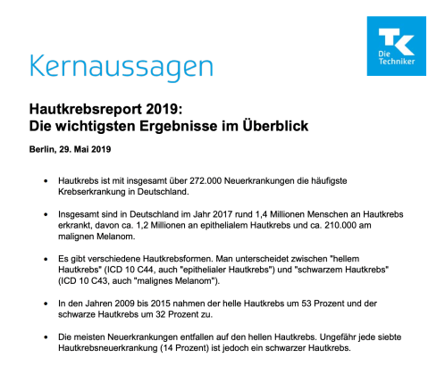 Ich empfehle dringend noch einmal die sehr verständlich und knackig aufgeführten Kernaussagen des TK Hautkrebsreports durchzulesen!