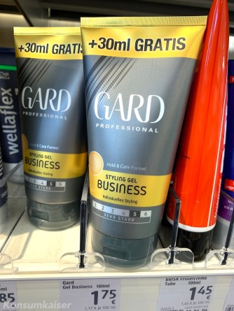Neulich im Drogeriemarkt. Da stöbere ich durchs Haarpflegeregal, da fällt mir das 2599ste Haargel auf. Neu vom Gard Haarstudio (äh, gibts das eigentlich noch?). Und was kann das? Nun es ist extra für Businessfrisuren! Ah ja.
