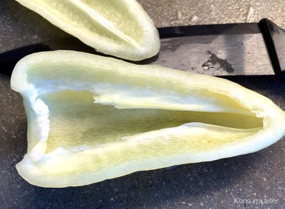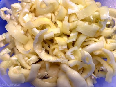 - Spitzpaprika, gelb (für 2 große Portionen verwende ich 4 Pakete à 500 g.)