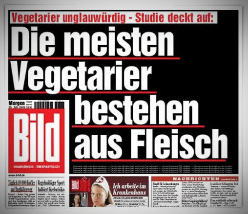 Ok., der Vollständigkeit halber, die obige BILD-Titelseite mit der Vegetarier-Schlagzeile ist nicht „echt“, sondern von einem Satire-Blog. Wer will, sieht leicht, dass es sich um ein Dummy handelt.