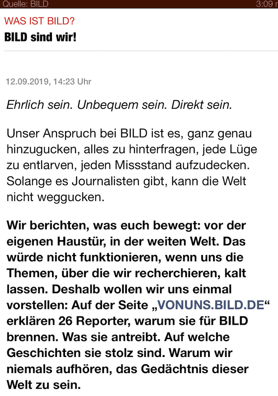 Nein, ich bin nicht objektiv, was die BILD betrifft. Sie legt es in ihrer Berichterstattung auf das Wachrufen von Emotionen an – und bei mir ruft sie ausschließlich negative hervor.