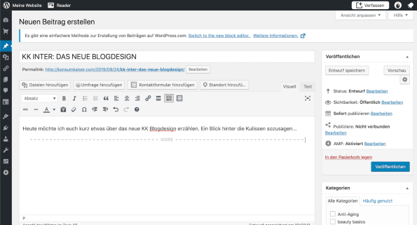 Die Darstellung hier „Hinter den Kulissen“ ist spannend, für mich als Nicht-Bloggende mal zu sehen, wie die Seite gestaltet und aufgebaut ist bzw. wieviel Arbeit auch im Betrieb des ganzen steckt.
