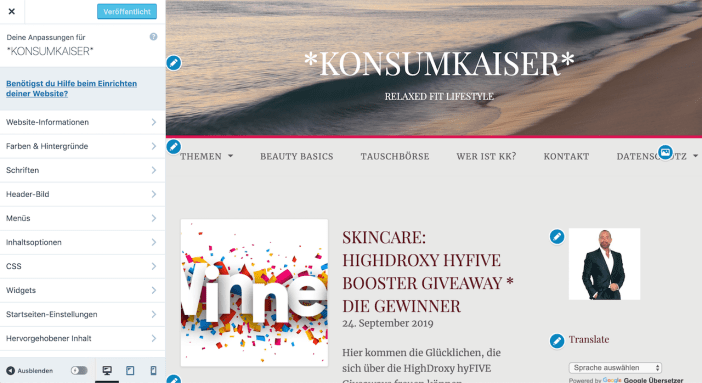 Ich kann nicht mal eben alle Schriften (Überschriften, Texte, Teasertext…) oder Farben einzeln anpassen, sondern das geht immer nur im Paket. So bin ich mehr als froh, eine recht freundliche und ansprechende Auswahl getroffen zu haben. Endlich sieht man auch gleich vorne das Beitragsdatum. Ich finde es äusserst wichtig gleich zu sehen, ob ein Artikel aktuell ist.