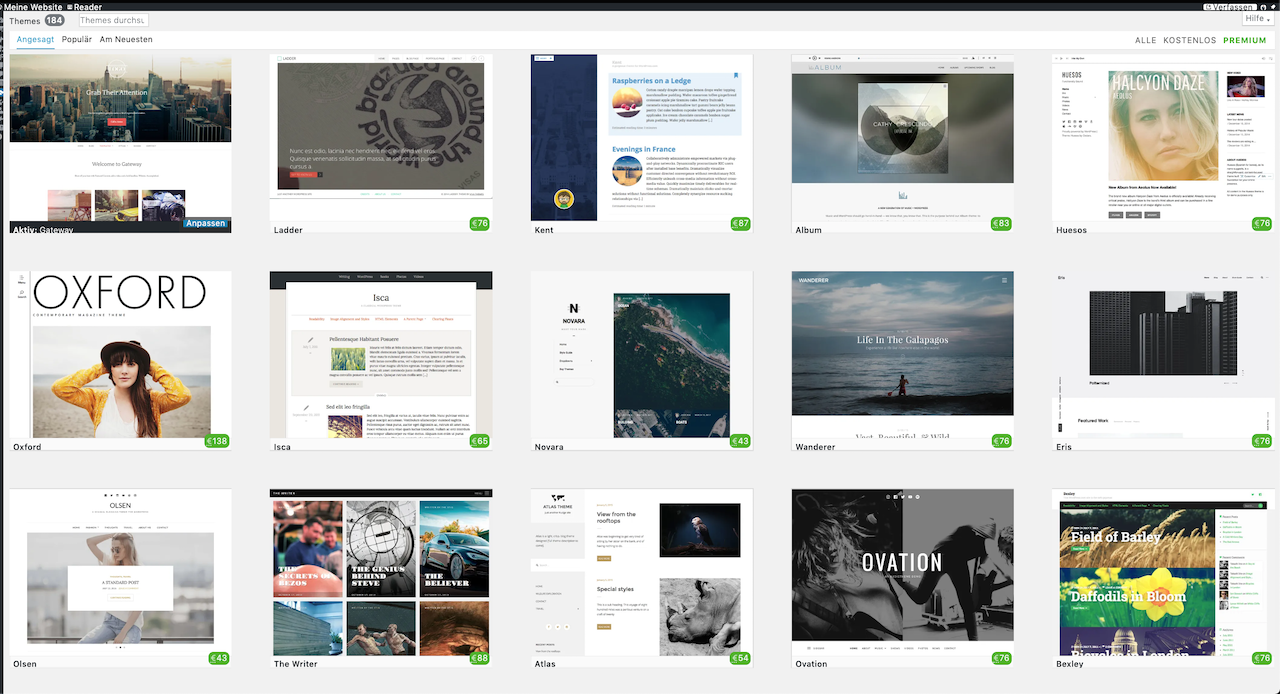 Zuerst muss man sich unter den verschiedensten „Themes“ (das ist sozusagen die „Kleidung“ eines Blogs) etwas passendes heraussuchen, was dann auch meist recht kostenintensiv sein kann.
