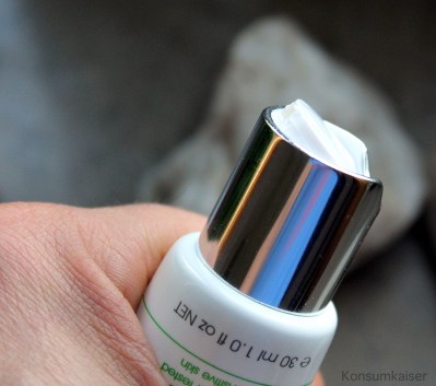 Natürlich musste ich mir sogleich das Retinolprodukt bestellen, das reizt mich wie immer sehr. Leider habe ich bei der Bestellung über eine Onlineapotheke wohl noch eine ältere Charge erwischt, denn ich habe ein Tube mit Klappöffnung bekommen, und nicht die neuere und wesentlich besser schützende Spendertube. Gerade beim so empfindlichen Retinol ist ein abschirmender Behälter sehr wichtig! Dieser hier ist ein großer Reinfall, weil die elastische Tube enorm viel Luft zieht.