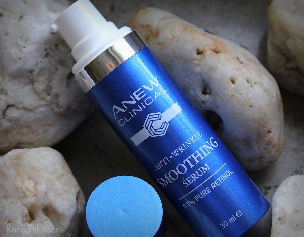 Das Avon Anti-Wrinkle Serum ist ein klassisches Retinolprodukt, das eine eher cremige Struktur aufweist und auf Wasser, Glycerin, anderen Feuchtigkeitsspendern, Silikonen und 0,1% Retinol aufbaut. Hier finden sich eigentlich wenige essentielle Inhaltsstoffe, trotzdem sammeln sich auch Antioxidantien (zB. Vitamine A, C, E), Peptide und eine Menge Duftstoffe, die das Produkt eine sehr lange Zeit auf der Haut duften lassen.