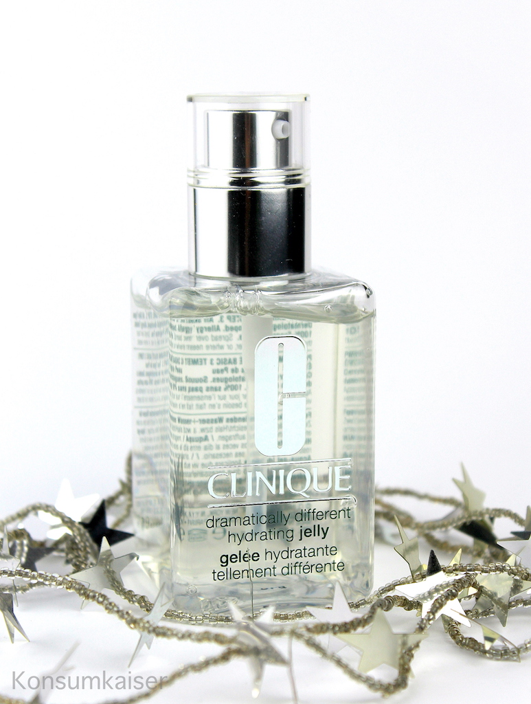 CLINIQUE Dramatically Different Hydrating Jelly (125 ml ca. € 48,00) Die dicke Clinique Spenderflasche ist Kult. Und das Feuchtigkeitsgelee ist ein prima Basisprodukt. Für ölige Haut eine wunderbar leichte Alleinpflege, für trockenere Hauttypen ein nettes und einfaches Feuchtigkeitsserum. Schön reizarm und nicht unbedingt überladen.