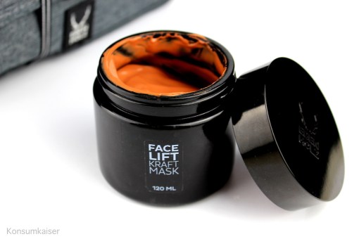Die Face Lift Kraft Mask ist das männliche Pendant zur oben erwähnten Instamud Maske, nur ohne Bubbles. Aber kurz vor der Dusche aufgetragen, dann unter der Dusche abgewaschen, sorgt sie hinterher für eine ebenso erstaunlich glatt und ruhig aussehende Haut – eine echte Empfehlung für alle, die auch mal augenscheinlich gestresst aussehen. Hinterher fühlt sich das Gesicht „so richtig sauber“ an, ohne zu spannen. Wichtig ist für mich auch, dass sich diese Maske mit Heilerde gut abwaschen lässt und nicht stundenlanges Abrubbeln erfordert. Set und Maske sind zwar nicht billig, aber eine wirkliche Empfehlung für anspruchsvolle Menschen, die auch gerne mal einen exklusiven Spa-Tag lieben.