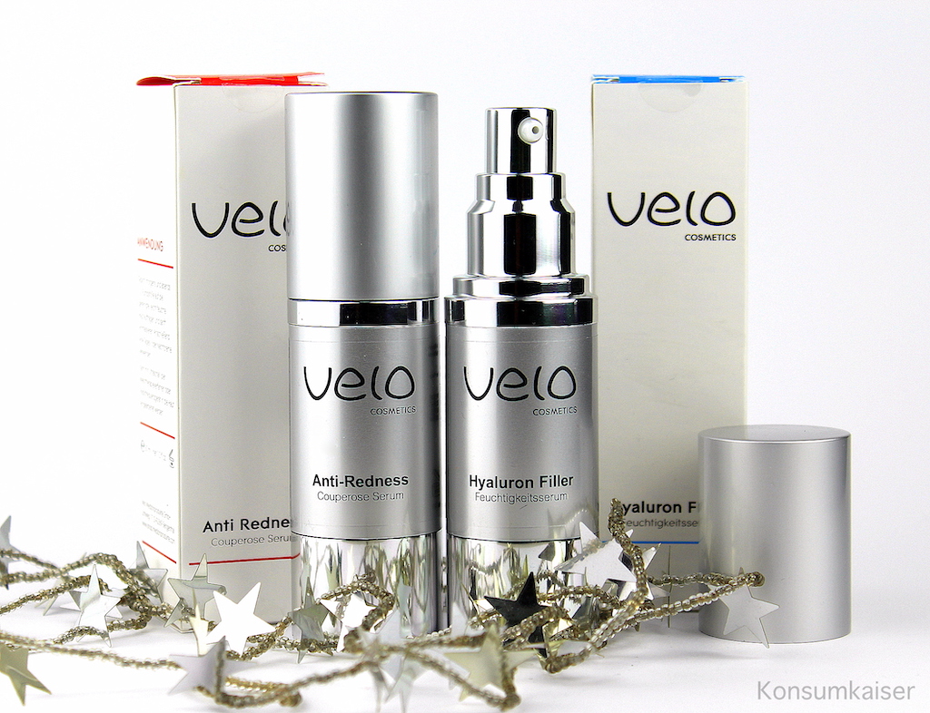 VELO COSMETICS Anti-Redness & Hyaluron Filler (ca. € 39,90 und 29,90 Hier gehts zu Velo Cosmetics) Velo ist für mich ein Geheimtipp, darüber werde ich in Zukunft noch deutlich mehr berichten. Wie gerade schon erwähnt, unterstütze ich deutsche Kosmetikfirmen gerne, wenn ich spüre, dass dahinter eine „Mission“ steckt. Gerade der Kosmetikmarkt ist voll, und viele Firmen haben gute Produkte im Angebot. Besonders dann schaue ich aber auch mal hinter die Kulissen. Ist das nur ein Geschäft, oder stehen dahinter Menschen, die diese Produkte schaffen, weil sie aufgrund ihrer eigenen Erfahrungen mit Hautproblemen für Hautpflege sensibilisiert sind?