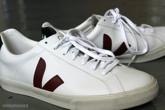 Löblich, dass diese Einstellung sich immer öfter mit angesagten Modeprodukten paart. Leider haben die Teile nur ein großes Problem, ich finde sie schrecklich unbequem. OK, Lederschuhe sind für mich ein Graus, denn die muss man nun mal einlaufen. Aber trotzdem: VEJA hat es geschafft, dass ich mir gleich am ersten Tag und innerhalb weniger Minuten einen dumme Blase gelaufen habe.
