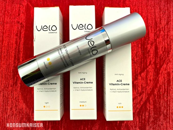 (Mein Geheimtipp) VELO Cosmetics bringt also bald drei ACE Vitamin-Cremes heraus, die man nach seinem eigenen Hautbedürfnis auswählen kann, und die mit Recht als komplette Wirkstoffcremes durchgehen. Also nicht bloß ein Serum mit ein paar plakativen Wirkstoffen, sondern gleich mit Pflege, Feuchtigkeit, Anti-Aging…auf einen Schlag. Und: jede Creme beinhaltet 0,2% Retinol. Eine sehr wirksame und dennoch vernünftige Dosierung, wie ich selbst einsehen musste, denn Powerprodukte (wie zB. Drunk Elephant) bekamen meiner Haut nicht immer so gut.
