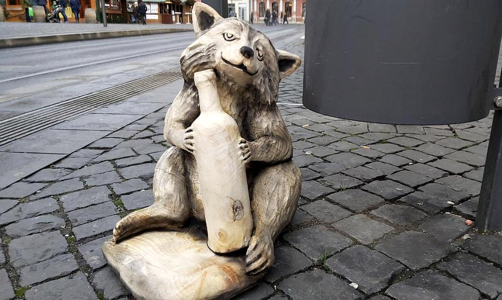 Und um die Gemüter vielleicht wieder ein wenig zum Abkühlen zu bringen, hat der Holzkünstler Florian Lindner nun ein kleines Denkmal für den „betrunkenen Waschbären“ erschaffen, das in Erfurt besichtigt werden kann.