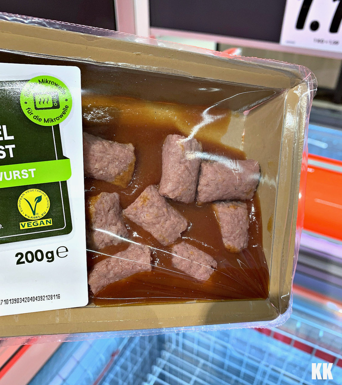 Das Problem: Das vegane Produkt sieht in Wirklichkeit aus, wie abgeschnittene Metzgerfinger im eigenen Saft. Huaaa, sowas habe ich wohl selten gesehen. Unappetitlich! Ob sich DAS tatsächlich verkauft? Mir vergeht da der Hunger. Dann lieber Verzicht üben, und sich alle Jubeljahre mal eine echte Wurst gönnen.