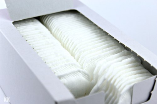 Derzeit nutze ich die „Silk Feel Cotton Puffs“ von Missha und die „1/3 Cotton Pads“ von Pyungkang Yul. In einer Box befinden sich immer 80 bis 160 Pads und die Preise liegen bei unter 5 Euro, wenn man in einem Shop in Deutschland bestellt. Aus Korea verschickt, kommt man auf Spottpreise, die mir ehrlich gesagt nicht geheuer sind.