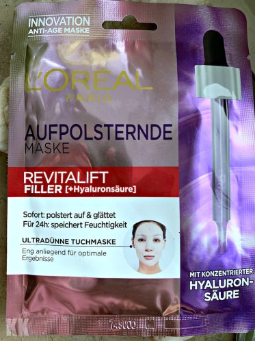 Diesmal ein relativ günstiges Drogerieprodukt von L´Oreal aus der Revitalift Filler Serie, Kostenpunkt ca. € 3,45 für eine Anwendung/Maske.