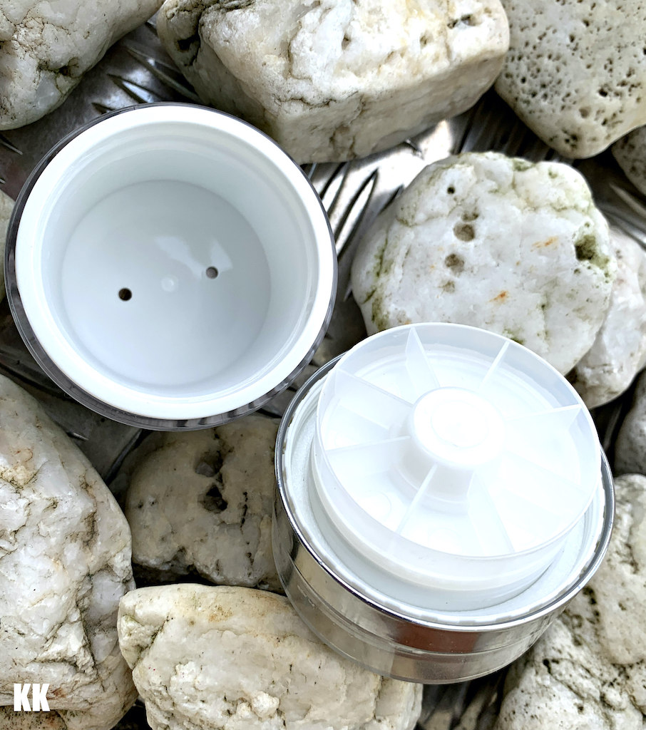 Eigentlich mag ich die Airless-Tiegel mit dem Druckmechanismus nicht besonders. Sie sind immer ein wenig mit Aufwand verbunden, denn man muss sie stets penibel sauber halten, sonst wird die Oberfläche des Oberteils recht schnell unansehnlich und schmuddelig.