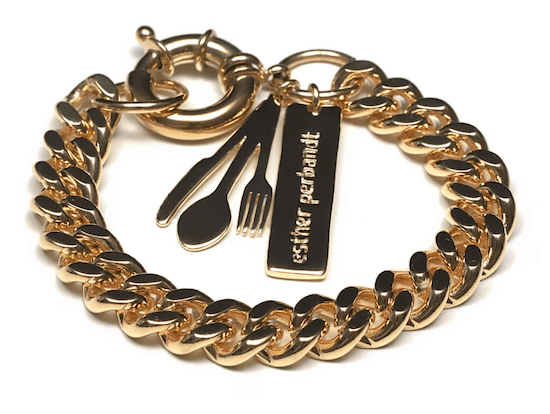 Übrigens finde ich das Armband mit dem Essbesteck in Gold aus ihrer „Hungry for Life“ Kollektion unwiderstehlich. So eine schöne Idee! (ca. 203 Euro)