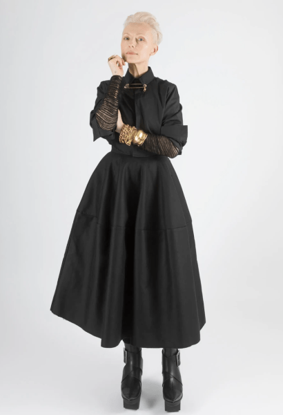 Esther Perbandt? Das ist die 1975 in Berlin geborene Schöpferin von Kleidung, Schmuck, Musik…ach, nennen wir es doch einfach Kunst mit Haltung. Esthers Universum ist schwarz, aber sie sagt dazu, dass in all ihren Schöpfungen ein strahlendes Licht scheint – sie ist „hungrig aufs Leben“, wie sie auch ihre MtC Kollektion nennt. Und damit hat sie recht, wenn man zu dem Denken übergeht, dass hinter Design, hinter Mode, hinter Kunst ja Menschen wie Esther stehen. Vergessen haben wir das, in diesem Dunstkreis der riesigen Modekonzerne, die Kleidung zu abfallartigem Fast-Food haben verkommen lassen.
