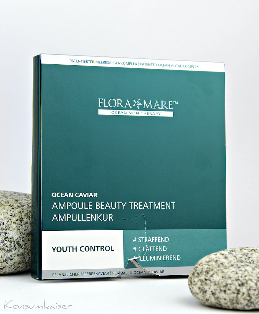„Die intensiv feuchtigkeitsspendende FLORA MARE YOUTH CONTROL Ocean Caviar Ampullenkur ist angereichert mit pflanzlichem Meereskaviar in Kombination mit einem Lifting Peptid der neusten Generation. Sie unterstützt die Haut in ihrer Strahlkraft und kann sie vitaler, frischer und straffer erscheinen lassen. Deine Haut profitiert bereits wenige Tage nach Beginn der Jugendlichkeitskur. Das Ergebnis ist eine strahlende, vital aussehende Haut. Der besondere pflanzliche Meereskaviar gilt als absoluter Jungbrunnen für die Haut. Als besonders exklusiven Wirkstoff enthält die Ampullenkur ein Peptid der neuesten Generation, das wie ein Schönheitsfilter gegen Mimikfältchen wirkt. Die vegane Textur der Ampulle ist frei von Mikroplastik & Silikonen, während die Verpackung ebenfalls aus einer nachhaltigen Produktion stammt.“