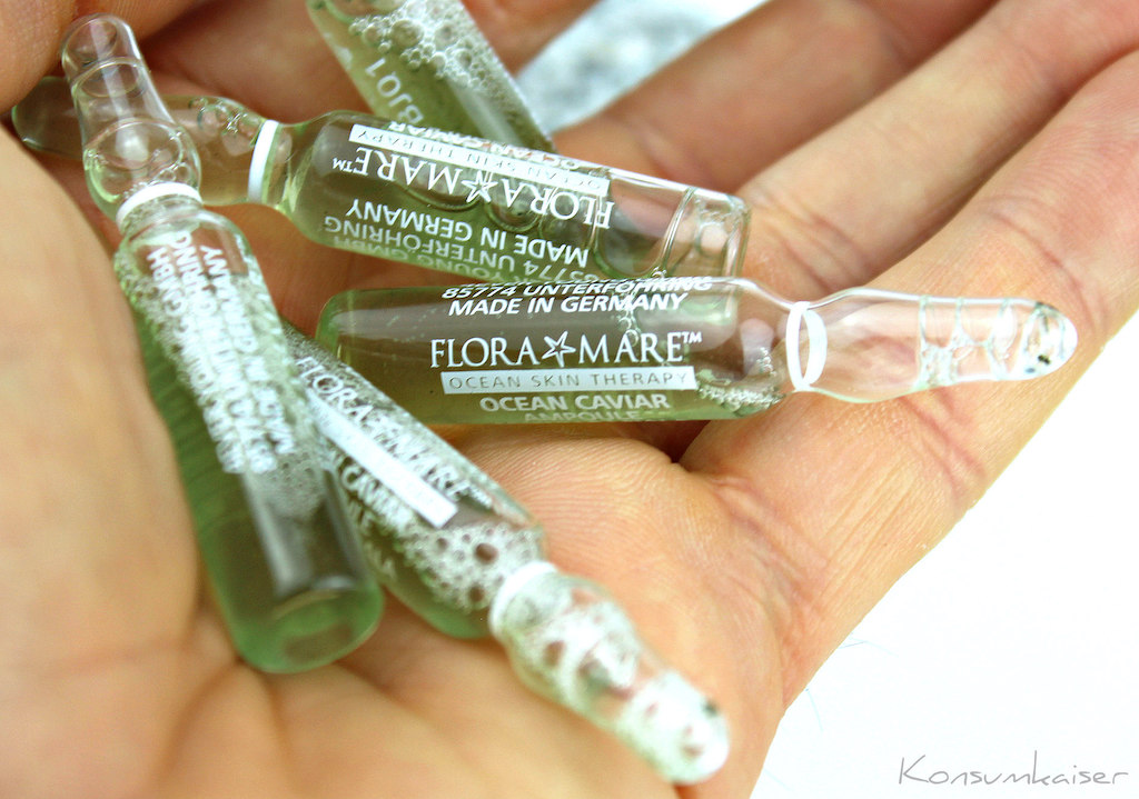Konzentrierte Ampullen mag ich sehr, meine Haut reagiert darauf meist äusserst positiv, und meine Haut macht schnell einen entspannteren Eindruck. So hatte ich auch hohe Erwartungen an die Ampullenkur von Flora Mare aus der Ocean Caviar Serie. Und die konnte mich dann tatsächlich noch überraschen.