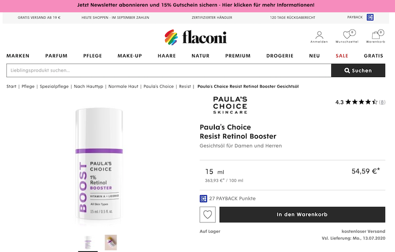 Flaconi hat Paulas Choice ausgelistet. Wie mir eine liebe Leserin mitteilte, gibt es die Produkte von Paulas Choice nun nicht mehr bei Flaconi zu kaufen. Aktuell sind noch 8 Produkte gelistet, ein paar davon nur Luxusprobegrößen.