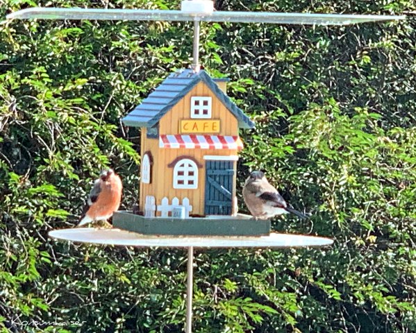 Deine ornitologischen Betrachtungen sind schon beim Lesen entspannend. Ich habe mir auch sogar kurz überlegt, ob ich auch ein Vogelhäuschen aufbaue, muss aber noch die Tatsache bedenken, dass hier 3 Katzen wohnen.