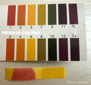 Hmm, bei Säuren in Kosmetikprodukten greife ich ja zuallererst zum pH-Teststreifen, denn zB. die hier enthaltene Glykolsäure kann nur bei einem relativ niedrigen pH-Wert (am besten < 4) korrekt arbeiten, sprich, die Peeling-Aktion auslösen.