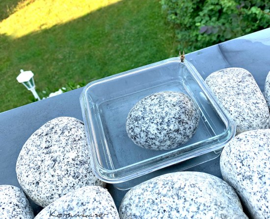 Hui, ich mache jetzt Hitzefrei und verschanze mich mit einem kühlen Drink im Haus. Denkt dran: VIEL TRINKEN. Auch die Haustiere. Und wir stellen immer mehrere verschieden große Schalen mit Wasser (und einem Stein darin) im Garten und auf den Balkon auf, damit die wilden Tiere (u.a. der kleine Hase im Garten, die vielen Vögel, und auch die Insekten, die durch die wilden Blumenwiesen angelockt werden) etwas kühles Nass genießen können.