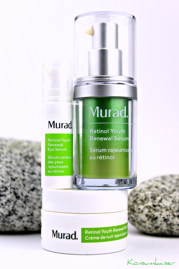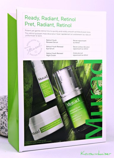 Wie wir ja gestern erfahren haben, gehört die Marke Murad nicht gerade zu den Schnäppchen auf dem Kosmetikmarkt. Da ich mir aber trotzdem gerne ein Bild von den drei Retinolprodukten aus der Retinol Youth Renewal Serie machen wollte, war ich ganz begeistert, als ich sah, dass es ein praktisches (und einigermaßen günstiges) Reise-Set zu kaufen gibt, das das Serum (15ml), das Augenserum (5ml) und die Nachtcreme (15 ml) enthält. (ca. € 56,00 zB. über lookfantastic)