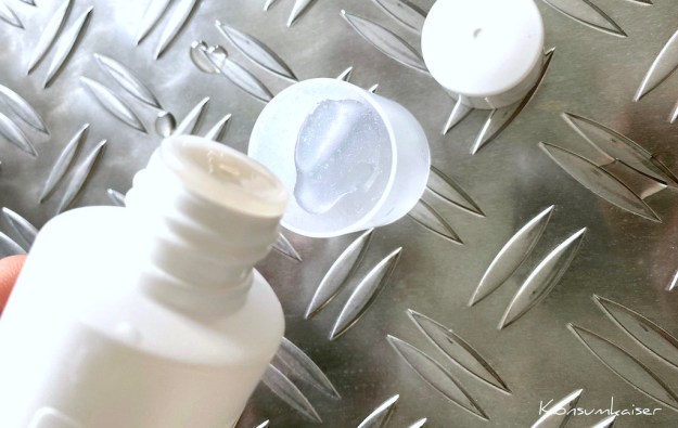 Wie erwähnt sind keine Duftstoffe enthalten, der Gurkenextrakt bringt dann aber doch eine gewisse „Frische“ in das Produkt, wer aber den Gurkenduft nicht mag, wird ein Problem haben, oder muss sich die Nase zuhalten. 😉