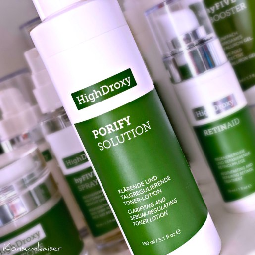 Und die Porify Lotion liegt genau in der Mitte, sie reizt überhaupt nicht, auch bei täglicher Anwendung, und die Haut sieht sauber und ausgeglichen aus. Ich bin, wie so oft, von Highdroxy mega begeistert.