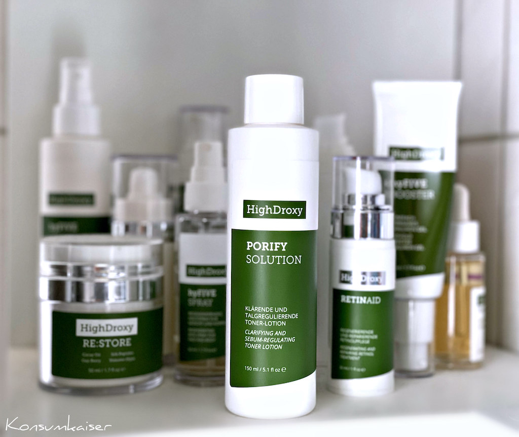 Und die Porify Lotion liegt genau in der Mitte, sie reizt überhaupt nicht, auch bei täglicher Anwendung, und die Haut sieht sauber und ausgeglichen aus. Ich bin, wie so oft, von Highdroxy mega begeistert.