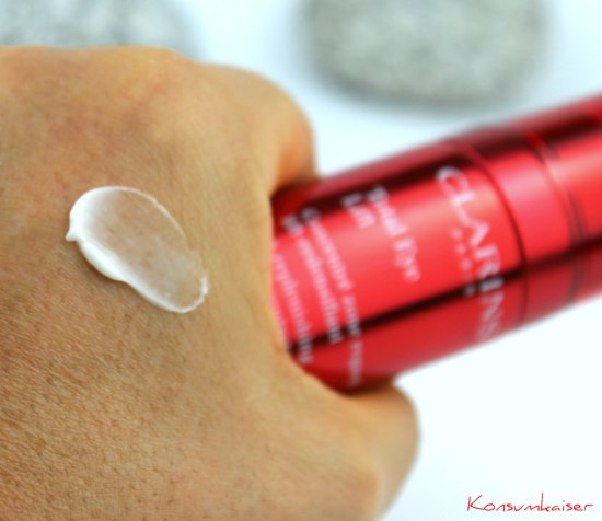 Solch eine Aussage, auch wenn sie von über hundert Probandinnen stammt, die Clarins für die üblichen Tests zur Verfügung hatte, ist natürlich schwer zu beurteilen. Kann diese Augencreme die Augenpartie in 60 Sekunden straffen, als wäre man 10 Jahre jünger, oder wie nach einem Besuch beim Beautydoc? Nein! In meinen Augen (haha) nicht, denn sowas kann keine Creme der Welt.