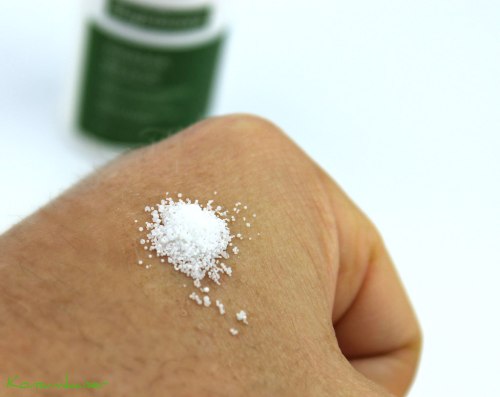 Das klingt schon mal schön sanft und flauschig. Doch Obacht! Ich habe die Erfahrung gemacht, dass es diese Kügelchen in sich haben. Sie besitzen durchaus „Kraft“ – ich musste mich doch sehr zügeln um das Peeling nicht zu lange und zu heftig durchzuführen. Ja, es ist verführerisch, aber ich appelliere an die Vernunft: Vorsichtig, sanft und nicht zu lange, mit weichen, kreisenden Bewegungen. Ein halber Teelöffel ist als Menge mehr als ausreichend für eine Anwendung von Gesicht und Hals. Auch ich habe zuerst überdosiert und zu stark gedrückt. Denkt an meine Worte!