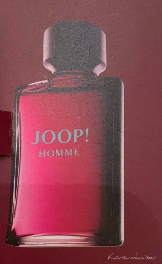 Bei meiner letzten Bestellung in einer Onlineparfümerie lag es dabei. Ein kleines, harmloses Pröbchen, im Plastikröhrchen, auf ein Pappmäntelchen geklebt. Sofort erkannte ich es an der knalligen Aufmachung. An diesem fetten Schriftzug mit Ausrufezeichen. An dem atemberaubenden Duft, der aus dem Paket kommend, stechend über meine Nase herfiel, und mich unsanft in das Jahr 1989 zurückkatapultierte. Joop! Homme ist zurück, offenbar konnte das niemand verhindern.