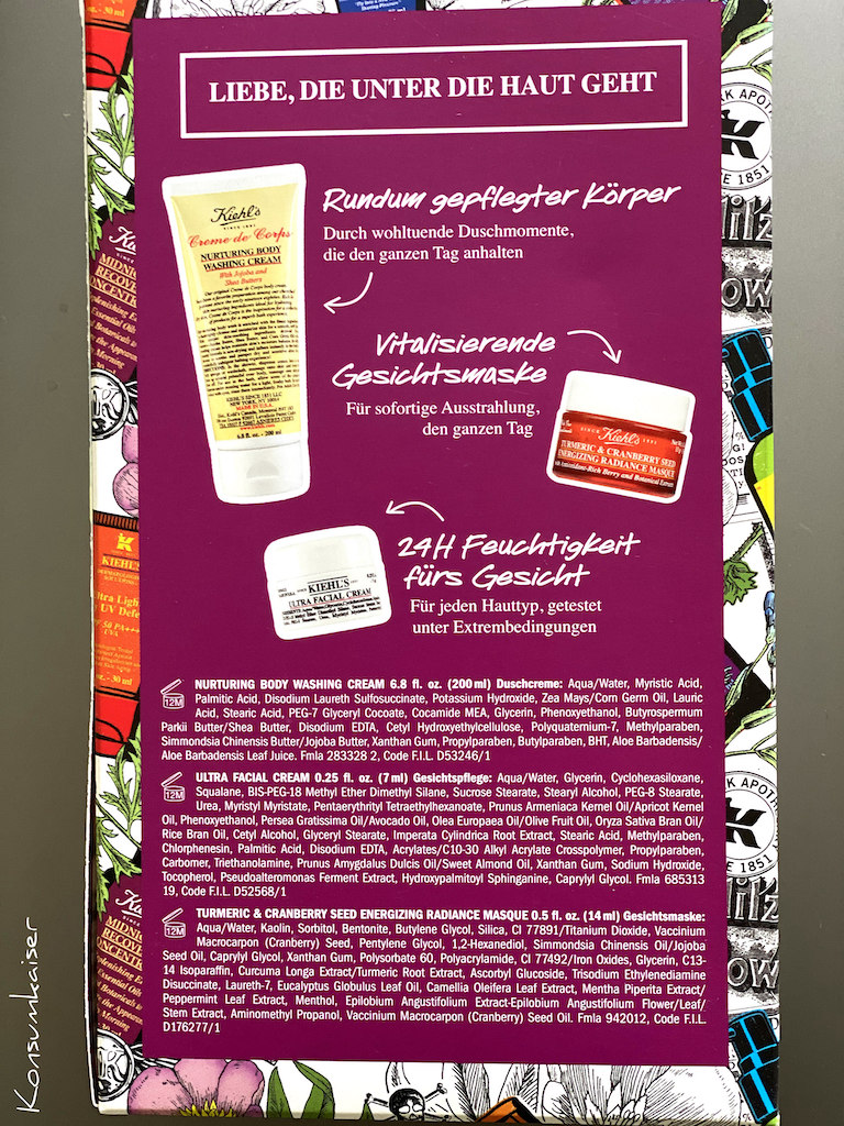Lieber KK, was für ein schöner Wochenbeginn! Mir gefällt das Set von Kiehl‘s sehr gut und vielleicht habe ich ja das Glück, eins zu gewinnen. Dein Blog ist echt super, außer bei Dir lese ich nur noch bei Irit Eser mit. Klasse statt Masse!