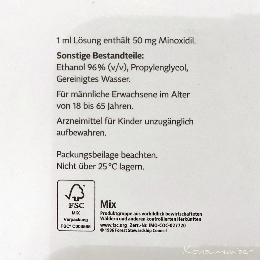 Ich selbst bin jetzt aber zu Panthrix (mit Redensyl) gewechselt, weil das wohl mehr Erfolg bringt und auch keine Nebenwirkungen hat (Kopfhaut war bei mir immer leicht geschuppt/gereizt).