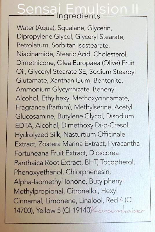 Das mit der Seide ist so eine Sache, man sollte sie in diesem Produkt vielleicht auch nicht überbewerten, denn üppig ist der Anteil des zarten Stöffchens nun nicht. Trotzdem begründet sich darin der Mythos von Kanebo/Sensai: