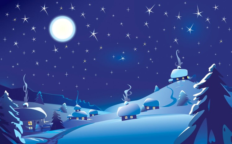 Vom Himmel bis in die tiefsten Klüfte Ein milder Stern herniederlacht; Vom Tannenwalde steigen Düfte Und hauchen durch die Winterlüfte, Und kerzenhelle wird die Nacht.