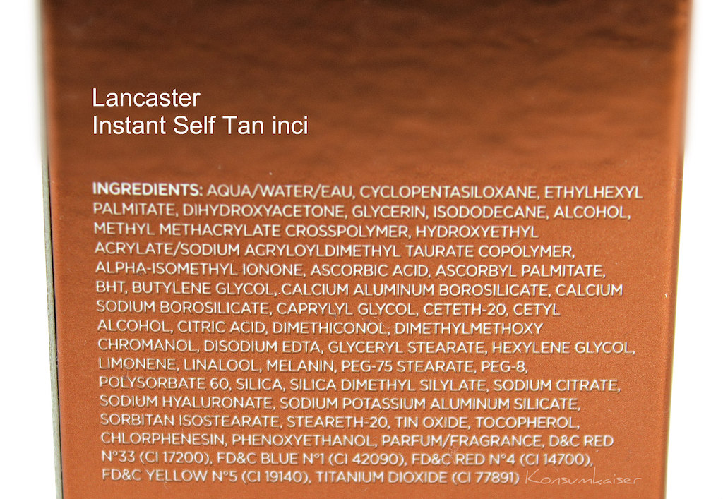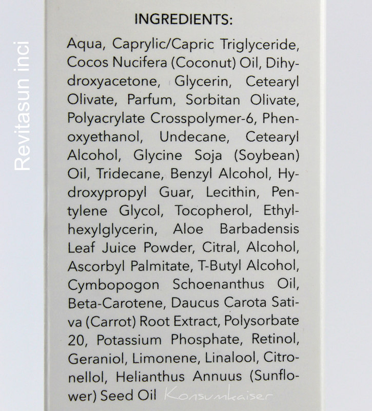 Die Produkte heute sind meist beduftet, haben oftmals auch extra deklarationspflichtige Duftstoffe an Bord, sowie Alkohol denat. Das nehme ich jetzt mal so hin, da die Beduftung die wirklich störenden Selbstbräunerdüfte übertüncht, und der Alkohol (einigermaßen gering dosiert) für eine komfortable Anwendung sorgt.