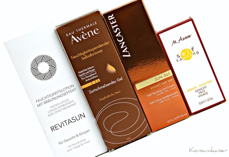 Die Sonne fehlt, einige andere Dinge auch, und so wirkt man in diesen Tagen irgendwie ein wenig blasser als sonst. Da ich da gerne mit etwas Selbstbräuner nachhelfe, um die Kalkwand aus meinem Gesicht zu vertreiben, habe ich heute einmal unterschiedliche Selbstbräuner von Revitasun, Lancaster, M. Asam und Avène zusammengetragen, die ich momentan recht gerne verwende.