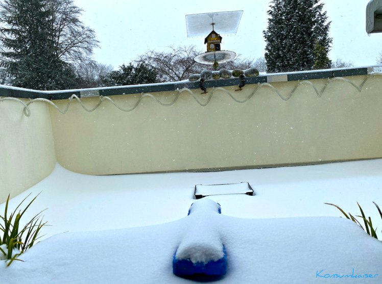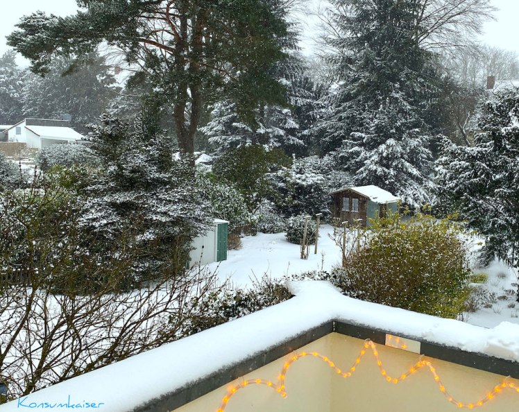 Äh, nein, auch nicht. Natürlich nicht, ganz im Gegenteil, ich grüße aus dem heimischen „Flockdown“. (Wenn das mal nicht DAS Trendwort in diesem Winter wird. Klingt doch deutlich kuschliger als Lockdown, oder?) Wir sind hier ziemlich eingeschneit (und eingeeist).