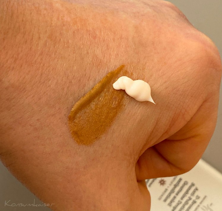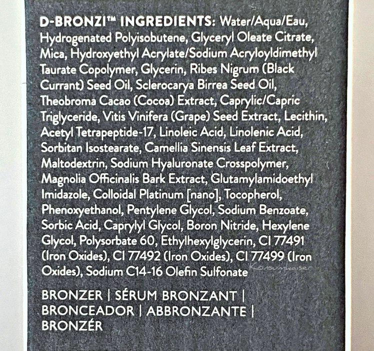 Insgesamt betrachtet, hat man hier einen kleinen Mehrwert, wenn man seine übliche Creme mit D-Bronzi anreichert. Aber man sollte sich nicht darauf verlassen. Die Tropfen sind kein Ersatz für eine richtige Portion Feuchtigkeit, Barriere stabilisierende Wirkstoffe, Lipide, Antioxidanzien, usw.