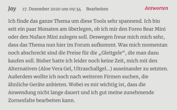 Das Interesse an elektrischen Geräten zur Gesichtspflege und Anti-Aging-Behandlung ist riesengroß, die Informationslage dagegen dünn. Aus diesem Grund habe ich dem Thema einen eigenen Blogpost gewidmet, sodass man die Erfahrungsberichte der KK-LeserInnen jederzeit problemlos wiederfinden kann.
