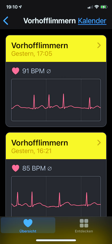 In diesem Zusammenhang begrüße ich es sehr, dass es mittlerweile so einige zuverlässige Geräte gibt, wie zum Beispiel die Apple-Watch (ab Serie 4), die diesen Zustand messen und melden können. Das finden auch Forscher weltweit, die teilweise erstaunt sind, wie akkurat die EKG-Messungen in Kombination mit intelligenter Software sein können, mit nur einem Kanal (ärztliche EKGs haben meist 12 Kanäle).