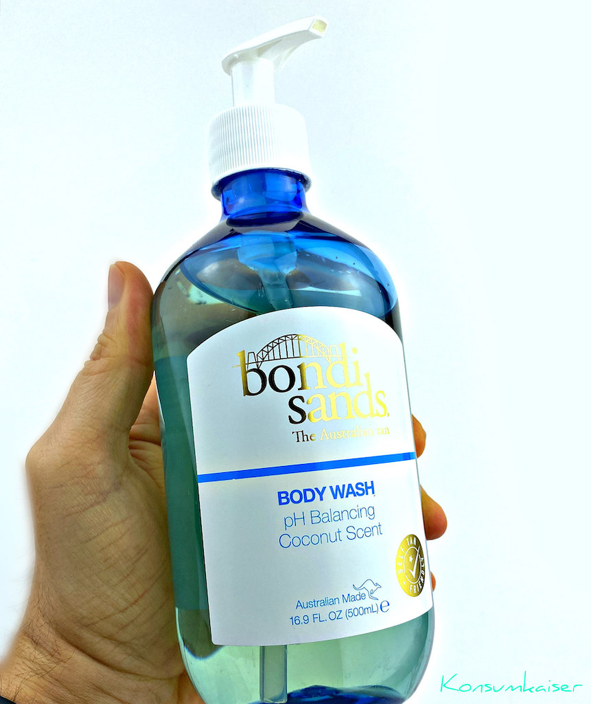 Mein erstes Duscherlebnis mit dem Body Wash der australischen Marke Bondi Sands war dann auch gleich ganz anders als gedacht. Der Duft zuerst: Viel besser, ausgewogener, voller, animierender als ich zu hoffen wagte. Ein Wort: Lecker! Das Bad duftet hinterher noch eine Weile, das muss man mögen…oder man lässt sich überzeugen.